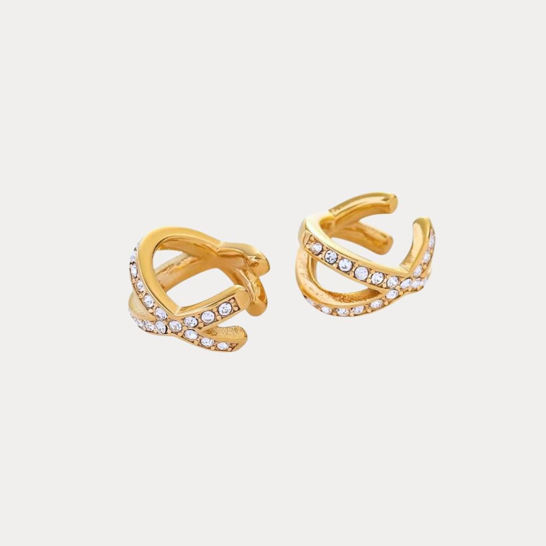 • Crystal Stone Hoop Cross Shape Ear Cuff Earring Women