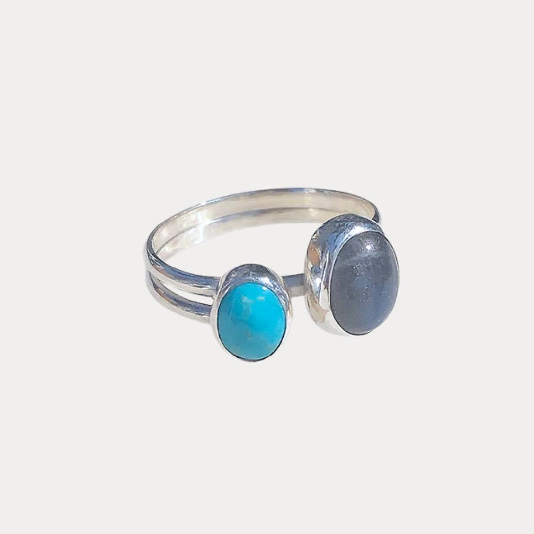 Bin Turquoise and Labradorite Stone Ring