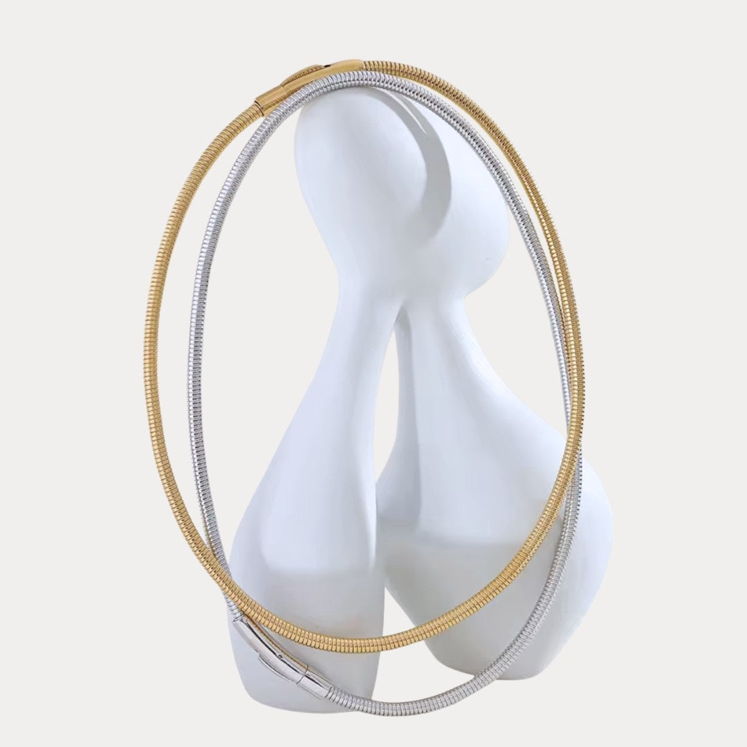 This exquisite gold snake choker, features a striking serpentine motif that embodies both sophistication and allure. Crafted with meticulous attention to detail, the choker lustrous finish enhances its luxurious appeal, making it a perfect accessory for any occasion. The unique choker style adds a contemporary twist, ensuring it stands out as a statement piece in your jewelry collection.