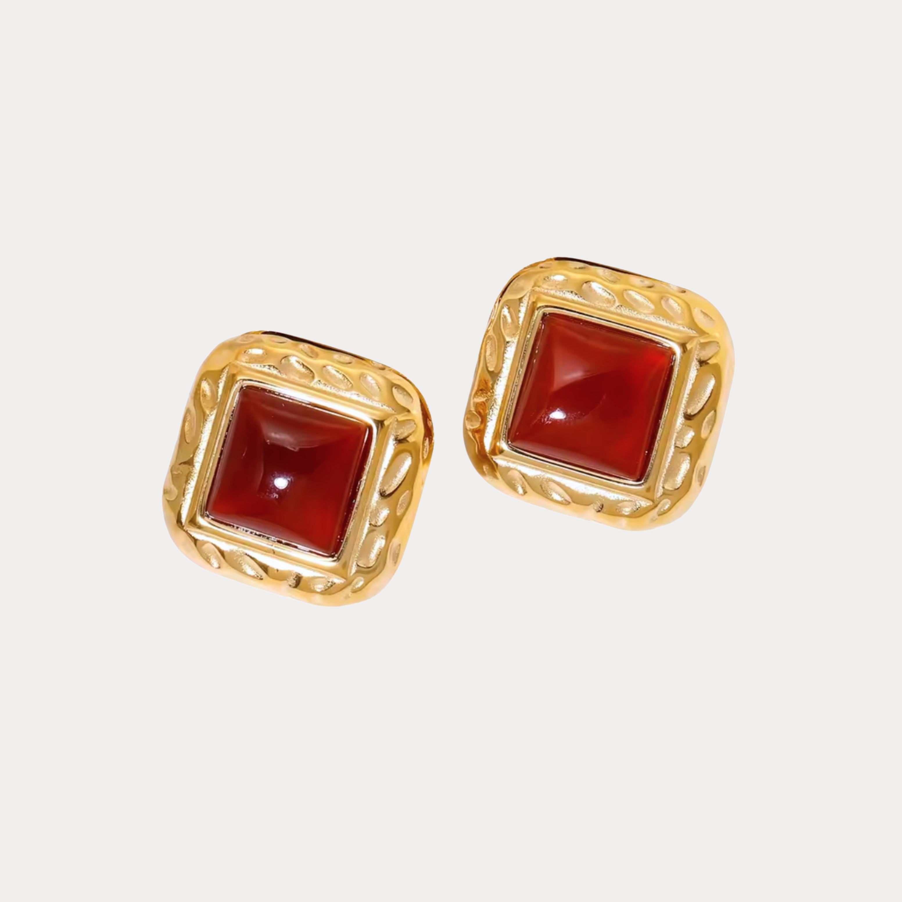 Elevate your accessory collection with these exquisite square-shaped gold tone earrings, featuring vibrant red stones that add a touch of elegance and sophistication. The striking contrast between the gold tone and the rich red creates a bold statement piece, perfect for both casual and formal occasions. Crafted with attention to detail, these earrings are designed to enhance any outfit, making them a must-have addition to your jewelry wardrobe.