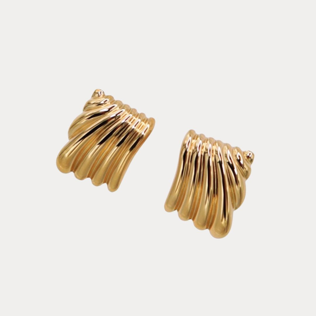 These exquisite gold tone earrings feature a unique twisted design that adds a touch of elegance to any outfit. Crafted with attention to detail, their sophisticated appearance makes them perfect for both casual and formal occasions. The lightweight construction ensures comfort while the lustrous finish enhances their visual appeal, making them a must-have accessory for any jewelry collection.