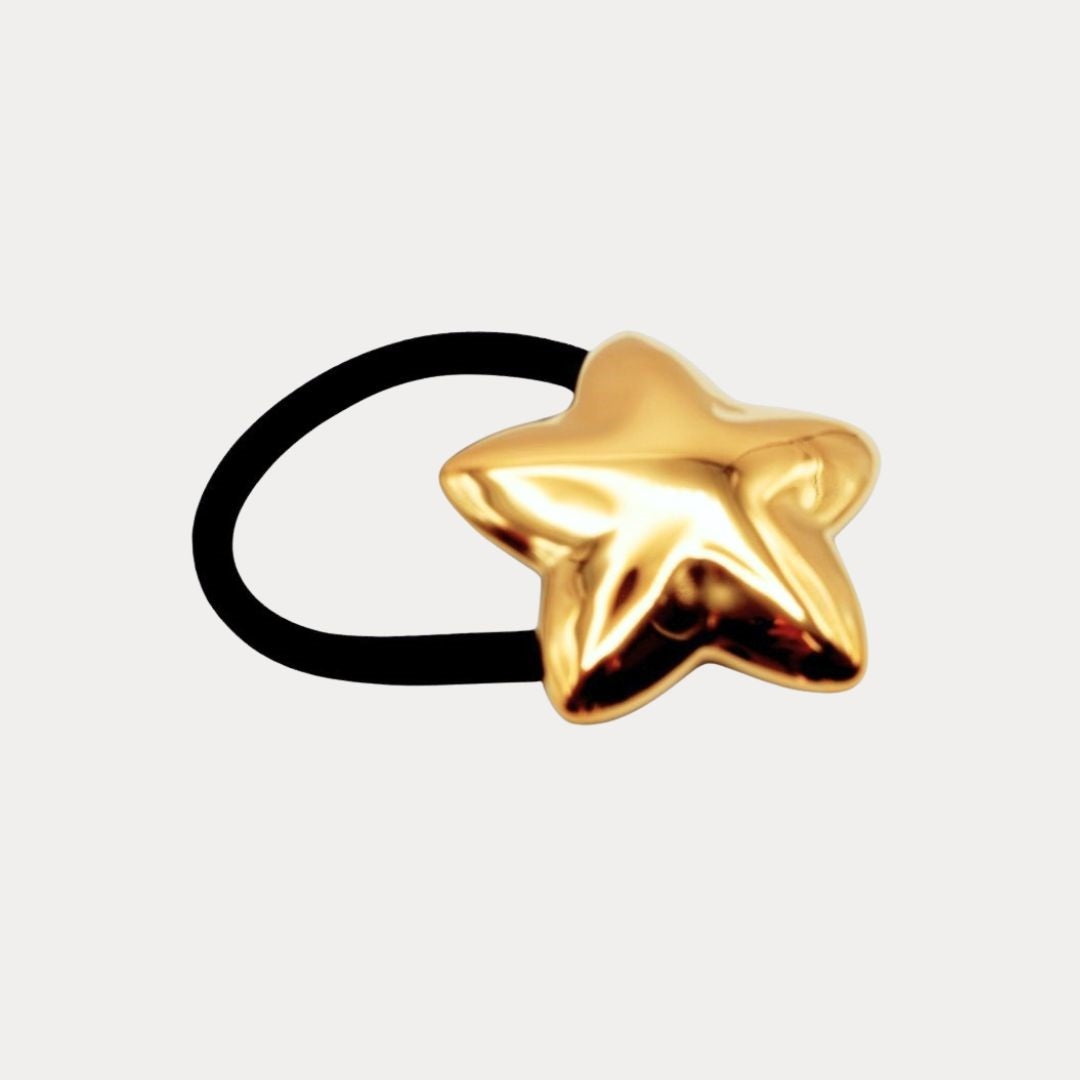 Elevate your hairstyle with this exquisite gold star-shaped hair tie, designed to add a touch of elegance and charm to any look. Crafted with high-quality materials, this accessory not only secures your hair in place but also serves as a stylish statement piece. Perfect for both casual and formal occasions, it effortlessly combines functionality with a unique aesthetic, making it an essential addition to your hair accessory collection.